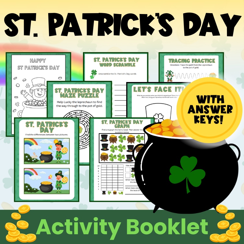 The St. Patrick's Day Activity Booklet is packed with themed puzzles, riddles, and challenges that reinforce literacy and math while keeping the holiday fun front and center.